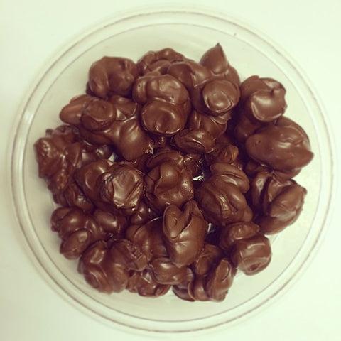 Orchard Gold California-Grown, Sun-Dried Cherry & Dry Roasted Almond Bombs are a unique and exquisite artisan treat, handmade with the best quality dark chocolate, milk chocolate and vanilla. These nuggets are laden with the most succulent, sweet and chewy sun-dried cherries and crunchy, smoky dry roasted almonds that we could fit into one (or two) bites! They are a flavor and texture explosion and pair incredibly well with dry red wines.