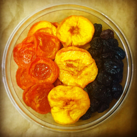 Each 1-lb round contains 1/3-lb of each of your favorite fruits! They make wonderful healthy snacks or gifts and are great for cooking and baking. Our Kosher Certified Dried Fruits contain small amounts of potassium sorbate and/or sulfur to preserve color and freshness (except for Cherries and Dates).
