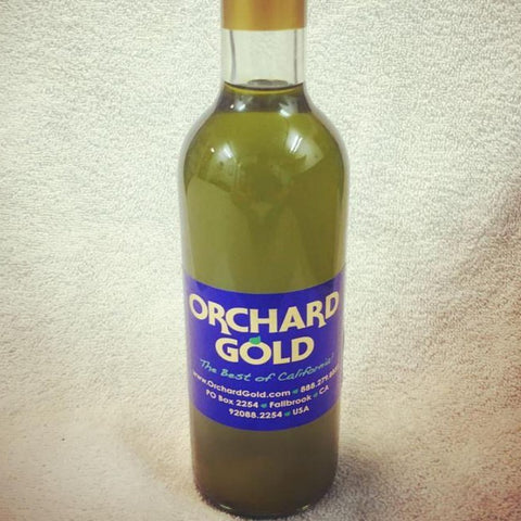Orchard Gold's Olio Nuovo is liquid gold and like no other extra virgin olive oil you have tasted. Dry-farmed in the foothills outside of Paso Robles, California, these green Arbequiña olives are hand-picked at the precise time, crushed and bottled within just a few hours, creating an unfiltered, velvety oil with an intense fruity nose, robust olive flavor and a distinct peppery finish. This oil is the perfect finishing oil or simply enjoyed with a warm piece of crusty bread. Very limited quantities. Reserve yours today!